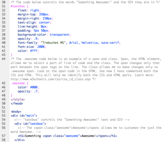 - Use comments to identify DIV’s in the CSS and HTML